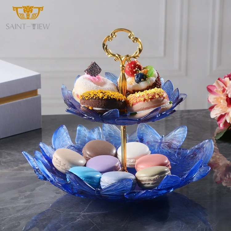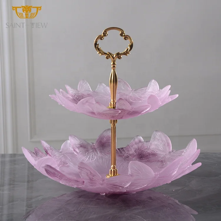 Butterfly Crystal Double-deck Dessert Cake Candy Display Rack Party Wedding Tray Table Centerpiece